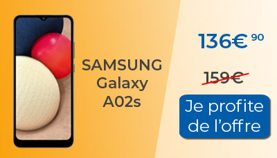 Le Samsung Galaxy A02s concerné par la promotion est sorti en ce début d'année 2021. Il est équipé d'un écran LCD de 6.5 pouces, de trois capteurs photo et d'une batterie de 5000 mAh. Côté processeur, il embarque une puce Snapdragon 450 épaulée par 3 Go de RAM et un espace de stockage de 32 Go. Pour en savoir plus, consultez la fiche technique du Samsung Galaxy A02s.