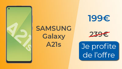 Le Samsung Galaxy A21s est doté d'un écran de 6.5 pouces affichant en HD+, de 4 capteurs photo dont un grand-angle de 48 Mpx et d'une batterie puissante de 5000 mAh. Côté processeur, il embarque une puce Exynos 850 associée à 3 Go de RAM et un espace de stockage de 32 Go. Pour en savoir plus, consultez la fiche technique du Samsung Galaxy A21s.