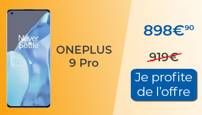 Annoncé en mars 2021, le tout nouveau smartphone de la marque OnePlus, le OnePlus 9 Pro, était très attendu. Pour réaliser ce modèle très haut de gamme et proposer un appareil photo digne de ce nom, on peut compter sur des capteurs photo associés à un traitement logiciel développé en collaboration avec la prestigieuse marque Hasselblad. Proposé à sa sortie au prix de 919?, vous le trouverez le OnePlus 9 Pro en promotion chez Fnac. Pendant 3 jours, une vente flash permet d'obtenir 20? de remise sur le OnePlus 9 Pro 128 go et 52? de remise immédiate sur la version 256 Go.