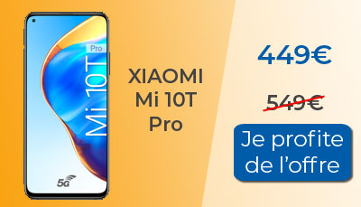 Si vous étiez intéressés par la version Pro du Mi 10T, sachez que lui aussi profite d'une baisse de prix actuellement. Chez RED by SFR, le prix du Xiaomi Mi 10T Pro est passé de 549? à 499?, soit une remise immédiate de 50?. Mais comme son petit frère, il a le droit également à l'offre de remboursement proposée par Xiaomi. Ainsi, avec 50? de remise en différée supplémentaire, il ne vous coûtera que 449?. Au total, vous économiserez donc 100? sur le prix de votre nouveau téléphone Xiaomi.