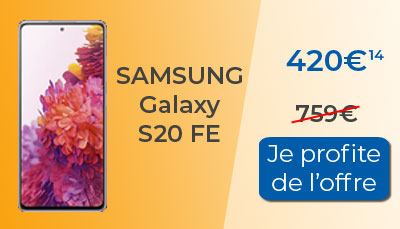 Bonne nouvelle aujourd?hui pour ceux qui sont à la recherche d'un smartphone Samsung pas cher. Le prix du Samsung Galaxy S20 FE est en chute libre chez Rakuten. Son prix passe de 759? à 440.14? seulement. Vous le trouvez encore trop cher ? Utilisez alors le code promo RAKUTEN20 en l'ajoutant dans votre panier. Vous verrez le prix de votre S20 FE baisser d'encore 20?. Vous pouvez donc l'acheter pour 420.14? ! A ce prix la, il n'y en aura pas pour tout le monde.