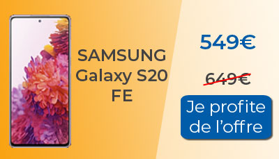 Si vous avez déjà un forfait mobile pas cher et que vous ne souhaitez pas changer d'opérateur, on vous propose de regarder du côté de l'enseigne Fnac. Elle aussi propose le Samsung Galaxy S20 FE compatible 5G à petit prix en ce moment. Avec une réduction de -21%, son prix passe de 759? à 599?. Vous pouvez donc acheter le Samsung Galaxy S20 FE à moins de 600?. La remise est immédiate. Elle s'appliquera directement au moment de l'achat car contrairement à RED by SFR, il ne s'agit pas d'une offre de remboursement.