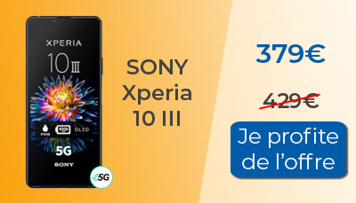 Le Sony Xperia 10 III, le tout dernier smartphone proposé par Sony, est déjà disponible chez plusieurs marchands. Vous le trouverez chez RED by SFR, Darty, Boulanger et Fnac notamment. Le modèle, avec un espace de stockage de 128 Go, est affiché au prix de 429?. Mais pour son lancement, Sony propose une offre de remboursement de 50?. Vous pouvez donc acheter le Sony Xperia 10 III pour 379? seulement.
