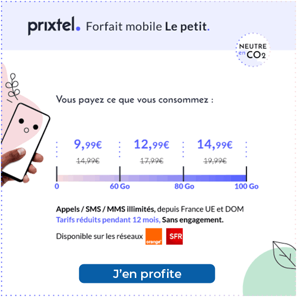 Aussi, l'opérateur Prixtel vous invite à contribuer à sa dynamique écologique en proposant un forfait mobile neutre en CO2. Pour ce faire, il participe à la reforestation du territoire français à travers des actions de plantation d'arbres visant ainsi la compensation intégrale des émissions de CO2, causées par l'utilisation des forfaits téléphoniques mobiles.
