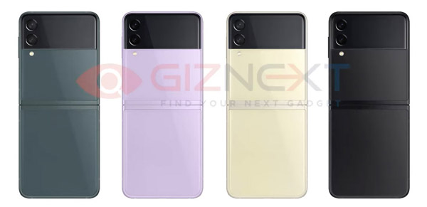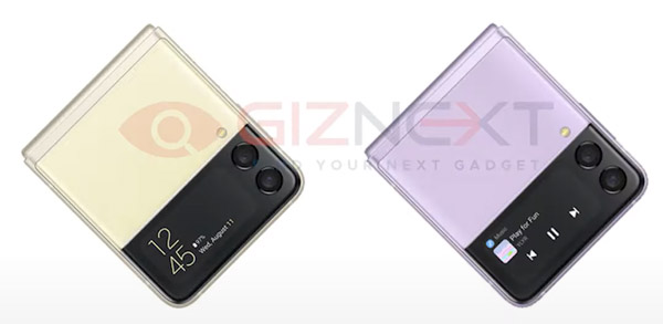 On peut voir sur les images haute définition qui sont visibles sur Internet que le futur Galaxy Z Flip 3 sera décliné en plusieurs couleurs et qu'eux-mêmes profitent de deux tons. La surface d'affichage extérieur est nettement plus importante que sur le premier Galaxy Z Flip qui était de seulement 1,1 pouce. Il devrait ainsi être beaucoup plus utile et permettra l'affichage d'un nombre plus conséquent d'informations, plus claires aussi. On peut également apercevoir deux capteurs photo, juste à côté de l?écran extérieur.