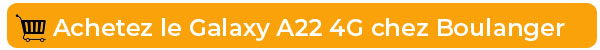 Annoncé officiellement en juin 2021, le Samsung Galaxy A22 est maintenant disponible. Samsung propose ce nouveau smartphone en version 4G ou 5G. A vous de choisir si vous avez besoin d'un téléphone compatible avec le réseau 5G ou non. Le Samsung Galaxy A22 4G est disponible chez Boulanger, Fnac, Darty ou encore Amazon à partir de 219?. Ce modèle est équipé de 4Go de RAM et d'un espace de stockage de 64Go.