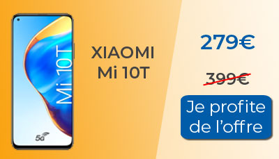 Vous avez envie de profiter d'un bon plan pour acheter le Xiaomi Mi 10T ? Vous êtes au bon endroit ! En ce moment, chez l'opérateur RED by SFR, le Xiaomi Mi 10T voit son prix chuter car il bénéficie de deux remises cumulables différentes. Au final, son prix passe de 399? à 279? seulement. Une première remise immédiate de -20? est proposée directement par l'opérateur. Vous ne paierez donc que ce smartphone Xiaomi 379?. Ensuite, le constructeur Xiaomi propose en plus une remise différée de 100? supplémentaire. En remplissant le coupon présent sur le site de RED et en renseignant les informations demandées, Xiaomi vous remboursera la somme de 100? après achat. Vous ne paierez donc votre Xiaomi Mi 10T que 279?.
