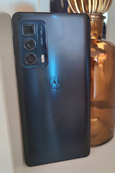 Son design est très Premium arrondi à l'arrière, avec, dans son dos, un îlot d'optiques installées verticalement, comme les autres edge20 et edge20 Lite.