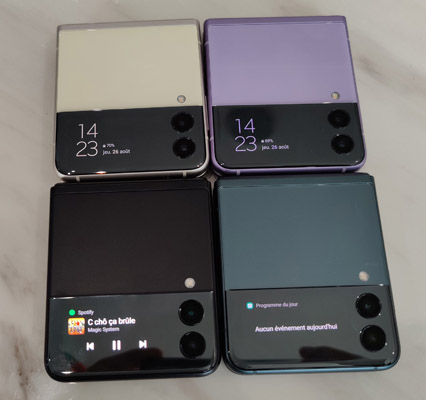 Plusieurs widgets sont désormais visibles sur cette surface d'affichage : contrôle de la musique, météo, nombre de pas, minuteur, messages, avec la possibilité d'avoir des animations et d'en changer le contenu. Cet écran ne permet pas de répondre aux messages qui pourraient arriver sur le téléphone mais seulement de consulter les différentes notifications ou pour des actions simples comme mettre en pause, avancer lors de la lecture d'une playlist audio, par exemple. Pour répondre à un message, il faut ouvrir le mobile. Le Galaxy Z Flip 3 est compatible NFC et permet de payer sans contact. Si vous utilisez le service Samsung Pay, il n'est pas nécessaire d'ouvrir l'appareil pour payer. Il suffit de faire glisser un doigt sur l?écran tactile pour activer la fonction de paiement puis de l'approcher du terminal et de valider l'opération en posant le doigt sur le lecteur d'empreinte digitale. Malheureusement, cette fonction n'est disponible qu'avec Samsung Pay et ne marche pas avec Google Pay qui demande l'ouverture du mobile pour réaliser la même opération.