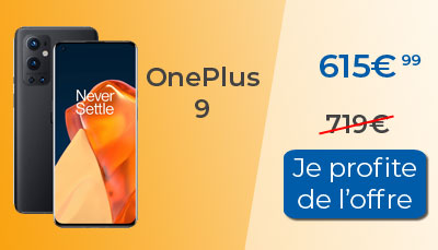 Comme la version Pro, le OnePlus 9 classique est lui aussi en promotion sur la boutique OnePlus via Amazon actuellement. Vous pouvez l'acheter au prix de 615.99? au lieu de 719?. Il profite d'une remise immédiate de -14%, ce qui vous fait économiser 103.01? en l'achetant dès maintenant. Là aussi, des facilités de paiement vous sont proposées pour acheter votre smartphone OnePlus 9 sans vous ruiner. La livraison est également gratuite.