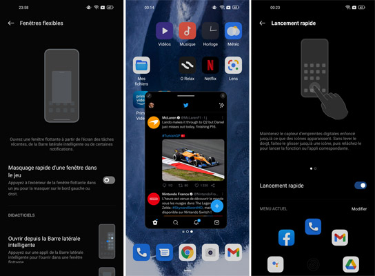 ColorOS 12 permet toujours d'avoir des fenêtres flottantes (fonction Flexdrop) sur l?écran afin de ne pas perdre de vue certaines applications en cours d'exécution comme une vidéo, par exemple.