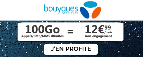 Pour bénéficier davantage de data, vous pouvez opter pour la série spéciale B&You 100Go qui vous permettra de disposer de 12Go (inclus) lorsque vous voyagez à travers l'Europe et les DOM au prix de 12,99? par mois.