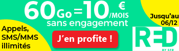 Il s'agit du prix de l'iPhone 13 avec un espace de stockage de 128 Go. Il est disponible en 4 coloris : bleu, noir, rose et blanc. Les versions avec un espace de stockage de 256 Go et 512 Go sont aussi en promotion. Elles profitent de la même baisse de prix. Depuis ce matin, RED by SFR propose de nouvelles promotions sur ses forfaits mobiles avec notamment une offre phare comprenant 60 Go pour 10?.