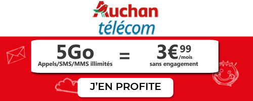 De son côté, Auchan Telecom propose jusqu'au 6 décembre prochain, 23h59, une série limitée avec 5Go d'internet utilisables depuis l'Union européenne* pour la modique somme de 3,99? par mois ! Ce tarif restera valable la première année de votre abonnement avant d'évoluer à 7,99? par mois.