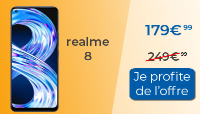 Lors de notre test du realme 8, nous avons été impressionnés par sa polyvalence et son endurance. Ce smartphone est un sérieux concurrent au Samsung Galaxy A52 ou au Xiaomi Redmi Note 10. Il est équipé d'un grand écran Amoled de 6.4 pouces avec une fréquence de rafraîchissement de 60 Hz. Ses performances, il les doit au processeur Mediatek Helio G95 qu'il embarque ainsi qu?à ses 6 Go de mémoire vive. Il possède également un espace de stockage interne de 128 Go extensible.