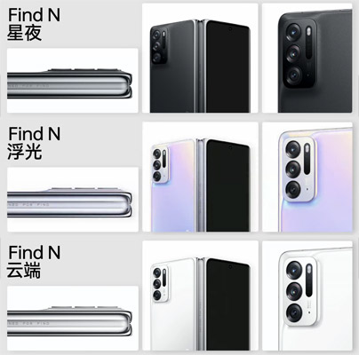 Le smartphone Oppo Find N s'appuie sur une charnière Flexion composée de 136 pièces. Elle peut maintenir les deux volets de l?écran à n'importe quel angle entre 50 et 120 degrés ce qui permet de placer l'appareil à demi ouvert devant soi pour différents usages comme se prendre en selfie, prendre une pose pour une photo, visionner un film ou une série, etc. Il s'agit de ce que Oppo appelle le FlexForm Mode. Alors que la charnière du Samsung Galaxy Z Fold3 (mais aussi celle du Galaxy Z Flip3) laisse un espace vide entre les deux volets, à leur base, lorsque l'appareil est refermé, celle du Oppo Find N élimine totalement cet espace. En outre, Oppo utilise une forme spéciale pour la pliure : une larme ce qui rend le pli moins visible d'environ 80%, selon l'organisme TÜV Rheinland. Grâce à ses deux caractéristiques, le mobile est capable d?être maintenu en équilibre pinçant une simple feuille de papier, une démonstration réalisée lors de la présentation. Oppo utilise une structure en verre Flexion Ultra Thin qui est fin de seulement 0,3 mm contre 0,6 mm chez les autres fabricants. Selon l'organisme TÜV, l?écran interne serait capable de résister à moins 200 000 manipulations où il n'y aura toujours « presque aucun pli ».