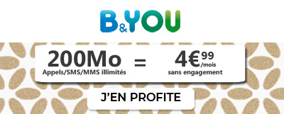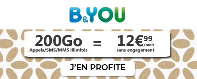 B&You a sorti le grand jeu pour contrer l'offre BIG Noël RED de son rival. Son offre Very B&You 200Go proposée jusque là 14.99? par mois passe à 12.99? toujours sans engagement et sans condition de durée.
