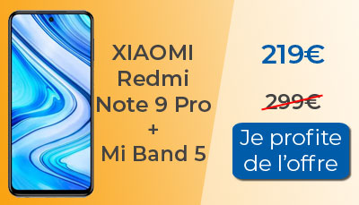 Mercredi, nous vous avons présenté une promotion incroyable concernant le Xiaomi Redmi 10 disponible à moins de 160?. Aujourd?hui, nous vous proposons de découvrir une autre promotion qui concerne cette fois le Xiaomi Redmi Note 9 Pro. Il est proposé dans un pack très avantageux chez Boulanger. Pour 219? au lieu de 299?, vous pourrez vous offrir le Redmi Note 9 Pro ainsi qu'un bracelet connecté Mi Band 5. Economisez ainsi 80? de façon immédiate sur votre achat. Le smartphone seul est vendu 219? alors c'est comme-ci avec cette offre la Mi Band 5 vous était offerte.