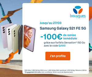 - Une grosse remise immédiate sur le prix d'achat standard du smartphone en associant votre smartphone au forfait mobile Bouygues Telecom indiqué ;