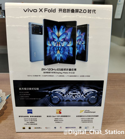 Le smartphone Vivo X Fold sera le premier modèle pliant de la marque chinois. Après Huawei, Samsung, Motorola, Oppo, Honor et Xiaomi, c'est donc au tour de Vivo de présenter officiellement son téléphone mobile doté d'un écran flexible. Il reprend le principe du pliage proposé sur le Samsung Galaxy Z Fold3, le Honor Magic V, le Oppo Find N ou le Xiaomi Mix Fold. Il est équipé d'un écran externe et d'un écran interne. Selon l'affiche exposée sur un stand marketing, le Vivo X Fold aurait une surface d'affichage extérieure de 6,53 pouces 1080x2400 pixels avec une fréquence de rafraîchissement de 120 Hz. C'est aussi le cas pour l?écran interne doté de la technologie LTPO 3.0 et pouvant ainsi faire varier sa fréquence entre 1 et 120 Hz, selon l'application utilisée. Il ferait 8 pouces en diagonale lorsqu'il serait totalement déplié.