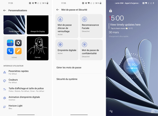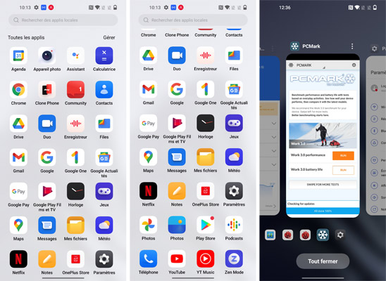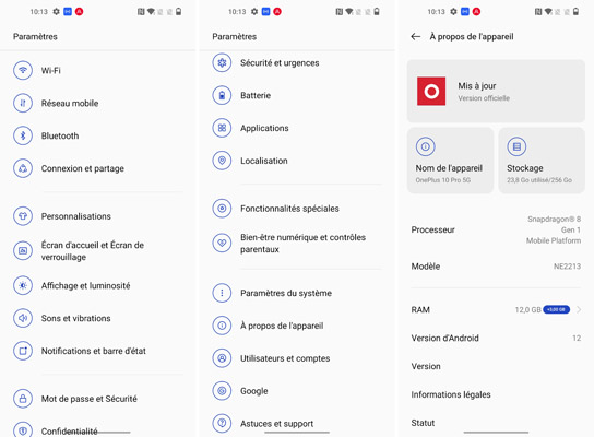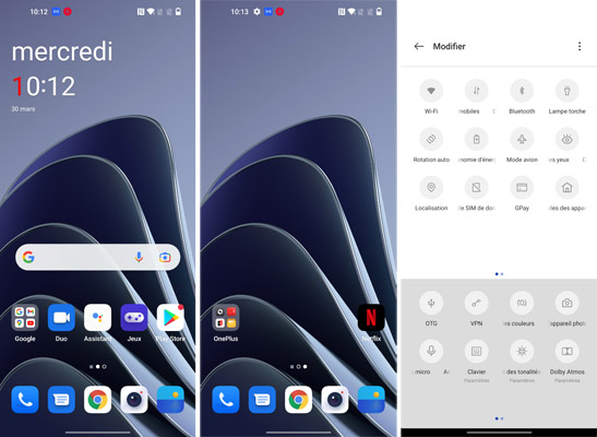 Contrairement à ce qui avait été annoncé il y a plusieurs mois maintenant, la marque OnePlus continue, du moins à l'international avec sa surcouche OxygenOS qui est remplacée par ColorOS d?Oppo en Chine. Nous apprécions cette interface qui offre un très haut niveau de personnalisation et s'avère extrêmement fluide à l'usage. Il s'agit ici de la version 12.1 d?OxygenOS.
