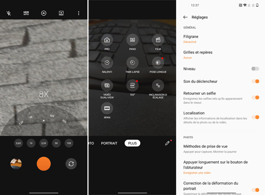 À titre de comparaison, rappelons que le Xiaomi 12 Pro embarque trois capteurs de 50 mégapixels et le Oppo Find X5 Pro dispose de deux capteurs de 50 mégapixels dont un stabilisé sur 5 axes et un autre qui fait macro et ultra grand-angle sur 110 degrés avec un dernier téléobjectif de 13 mégapixels pour un zoom optique 2x. Les deux profitent d'un capteur Sony IMX615 de 32 mégapixels à l'avant. Par rapport au OnePlus 9 Pro, seul le module Samsung est nouveau, les autres étant identiques et le capteur noir et blanc a même disparu. Pour la seconde génération de la collaboration avec Hasselblad, OnePlus peut compter sur l'intégration de la solution Billion Color permettant d'appliquer un étalonnage naturel des couleurs. Les trois capteurs photo sont capables de prendre des photos en mode 10 bits. On peut compter sur la présence d'un mode Pro au sein de l'application Appareil Photo sur le OnePlus 10 Pro donnant accès à la possibilité de capturer au format RAW 12 bits avec les trois modules arrière. Sur l'application présentant une interface classique avec un bouton de déclenchement orange, couleur d?Hasselblad, les modes de prises de vue de gauche à droite sont : Nuit, Vidéo, Photo, Portrait et Plus. Ce dernier menu permet d'accéder à d'autres modes : Pro, Pano, Film, Ralenti, Time-Lapse, Pose longue, vidéo Dual view, 150 degrés, inclinaison/décalage et XPan. Tous, sauf le menu XPan peuvent être déplacés en haut de l?écran pour y accéder plus rapidement. Les niveaux de zoom ultra grand-angle (0,6x), 1x et 3,3x sont immédiatement disponibles. Dans le mode 150 degrés, on peut activer un mode Fish-eye. Attention, il n'y a pas de correction d'orientation ce qui peut provoquer quelques aberrations sur les côtés. La qualité des photos prises avec le OnePlus 10 Pro est tout à fait satisfaisante et on apprécie notamment les clichés en nocturne ainsi que l'excellent piqué et la réalité des couleurs produites.