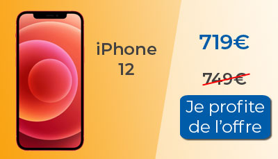 Envie de vous offrir le célèbre iPhone 12 ? Moins cher que l'iPhone 13, on va vous dévoiler tout de suite où vous pouvez l'acheter au meilleur prix en ce moment. Encore proposé à 809? sur l?Apple Store, vous pouvez le trouver au prix le plus bas chez RED by SFR. Avec une remise immédiate de 30?, son prix chute de 749? à 719? sur le site de l'opérateur. Il s'agit d'un smartphone neuf et débloqué. Cette offre incroyable est ouverte à tous.