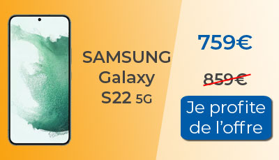 Envie d'un smartphone encore plus performant que le Samsung Galaxy A53 5G qui est en promotion ? Nous vous proposons de vous intéresser à l'offre concernant le smartphone le plus premium de chez Samsung, le Galaxy S22. A l'occasion de la fête des pères qui aura lieu le 19 juin prochain, le constructeur propose une offre promotionnelle très intéressante sur son site internet. Proposé à 859?, le Galaxy S22 profite d'une offre de remboursement de 100?. Ainsi, vous ne paierez au final votre téléphone 759? seulement. Valable jusqu'au 30 juin, pour en bénéficier il vous suffit de soumettre votre demande sur le site de Samsung.