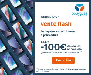 Ouverte jusqu'au 10 juillet, cette vente flash de Bouygues Telecom vous offre la possibilité de profiter d'importantes réductions sur le coût de revient final d'une large sélection de smartphones Premium.