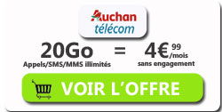 Les opérateurs Syma Mobile et Auchan Telecom mettent chacun en avant une offre mobile à prix mini sans condition de durée. Vous pourrez ainsi profiter d'un forfait à 4,99? par mois avec 20Go pour surfer sur le net en France métropolitaine.