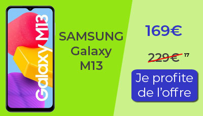 Si vous avez un budget plus serré pour changer de téléphone, pas de panique, vous pourrez aussi vous offrir la qualité Samsung. Des modèles beaucoup plus abordables comme les Galaxy M13 et Galaxy M23 profitent aussi de cette offre promotionnelle pour être encore moins chers que d'habitude. Ainsi pour 169€ seulement, faites vous plaisir avec le Galaxy M13.
