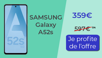 Un peu moins cher mais toujours en promotion, retrouvez le Samsung Galaxy A52s. Après une réduction immédiate de 238€, vous pouvez l'acheter à 359€ seulement. Un peu plus accessible que le GalaxyA53, il offre lui aussi une belle fiche technique. En lisant le test complet du A52s, vous saurez tout de ce smartphone et pourrez ainsi faire un choix éclairé.