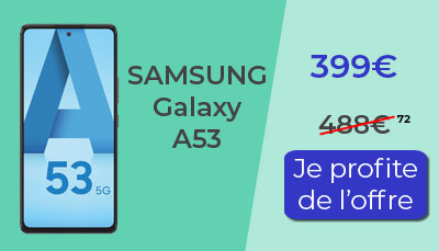 Avec un budget entre 300€ et 400€, grâce aux folles promotions des Jours Samsung, qui seront disponibles pendant 72h seulement vous pouvez vous offrir les Samsung Galaxy A53 et Galaxy A52s. Grâce à une remise immédiate de 89.72€, le prix de l'excellent Galaxy A53 chute de 488.72€ à 399€. Il passe donc en dessous de la barre fatidique des 400€. Pour tout savoir des caractéristiques de ce smartphone, n'hésitez pas à lire notre test du GAlaxy A53. Nous vous dévoilons tous ses petits secrets.