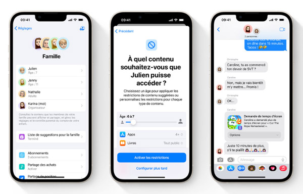 À des fins de contrôle parental, vous pouvez recevoir des alertes si vos enfants ainsi surveillés essaient d’envoyer des photos suspectes et en cas de chemin inverse pour de tels clichés, des ressources de prévention sont proposées. Le temps d’écran peut être réglé et la mise en œuvre est simplifiée. Une rallonge de temps d’écran supplémentaire peut être demandée par l’enfant par Messages. Pour la santé, iOS 16 propose la mise en place d’un suivi de prise de médicaments depuis la création d’une liste de rappels et un suivi des menstruations peut également être établi. Vos proches peuvent partager leurs informations de santé au sein de l’application correspondante.