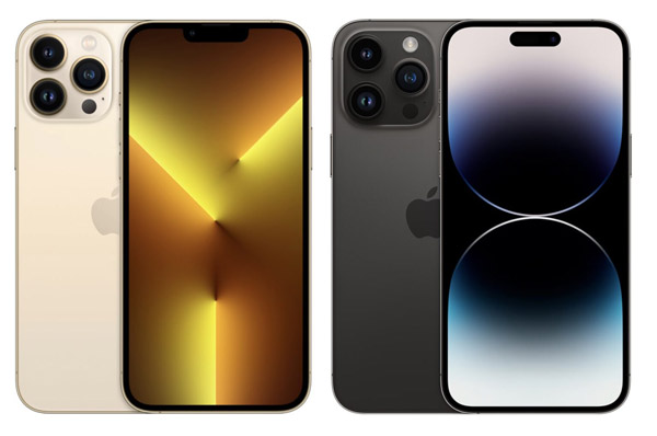 Esthétiquement, il n’est pas évident de faire la différence entre l’iPhone 13 Pro Max et l’iPhone 14 Pro Max. Le premier est proposé en violet, or, argent ou noir alors que le deuxième est décliné en bleu, graphite, or, argent et vert. Les mesures sont très légèrement différentes puisque le nouveau modèle affiche 160,7x77,6 mm contre 160,8x78,1 mm pour l’iPhone 13 Pro Max. L’iPhone 14 Pro Max est un peu plus épais : 7,85 mm contre 7,65 mm pour le précédent modèle. Les deux font presque le même poids, soit 240 grammes pour l’iPhone 14 Pro Max et 238 grammes pour l’iPhone 13 Pro Max ce qui est assez lourd, la moyenne du poids d’un smartphone étant de l’ordre de 200 grammes environ.