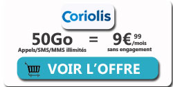Le forfait mobile 100Go de l'opérateur Coriolis bénéficie d'une remise mensuelle valable les six premiers d'abonnement pour toute souscription avec le 25 octobre prochain, minuit. Il passe ainsi au tarif de 10.99€ au lieu de 13.99€ par mois. Les deux autres séries spéciales 50 et 140Go sont quant à eux en promotion au prix respectif de 9.99€ et 14.99€ sans condition de durée.