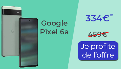 Le Google Pixel 6a est un smartphone moyen de gamme sorti par Google récemment. Il s'agit d'une version "light" du Google Pixel 6, mais possède de bons arguments : son petit prix, son écran et ses bonnes performances. Sorti à 459€ le Pixel 6a est aujourd'hui à 334€ soit plus de 100€ de réduction ! Vous ne trouverez pas un prix plus bas aujourd'hui !