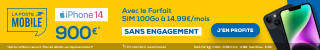 L'opérateur La Poste Mobile met en avant une offre promotionnelle à l'occasion des fêtes de fin d'année qui approchent... De quoi se faire plaisir avec le nouvel iPhone 14 Minuit 128Go 5G ! Ce dernier est au prix de 900€ si vous souscrivez au forfait 100Go à 14,99€ par mois - forfait sans engagement que nous vous présentons en dernière partie de cet article. Vous recevrez alors, après l'achat de cet iPhone 14, une remise de 50€ !