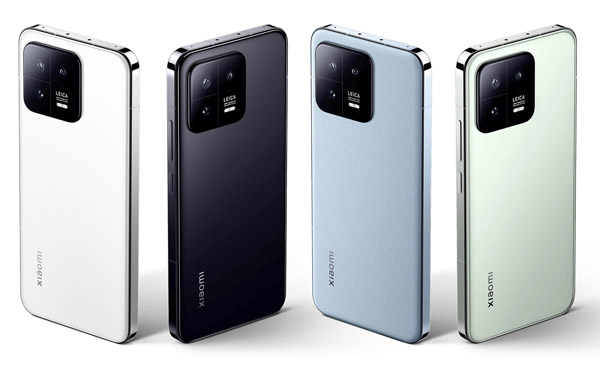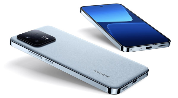 Le design du Xiaomi 13 est légèrement différent. Il est plus compact proposant des dimensions de 152,8x71,5 mm pour un profil de 8 mm ou 8,1 mm, selon la finition. En effet, l’appareil est proposé en noir, vert, gris, blanc ou bleu clair. Comme la version Pro, la finition bleue dispose d’un revêtement en similicuir. Xiaomi a aussi annoncé des versions plus flashy ; rouge, jaune, vert et bleue.