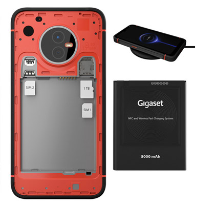 Celui-ci présente l’avantage d’être protégé par un cadre protecteur. Il dispose d’une coque en plastique moulé par double injection et d’un boîtier mêlant aluminium, magnésium et titane. Selon Gigaset, il répond à la norme militaire MIL-STD-810H. Cela signifie qu’il peut résister à des chutes de 1,2 m sans dommage. Cela implique également qu’il est totalement étanche à l’eau douce ainsi qu’à la poussière et qu’il peut fonctionner à des températures extrêmes de -15°C à +45°C. On peut même le nettoyer à l’eau, à l’alcool ou au désinfectant, sans risque.