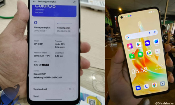 Le smartphone Oppo Reno8T pourrait utiliser un écran AMOLED de 6,43 pouces avec une fréquence de 90 Hz. Il serait animé par une batterie d’une capacité de 5000 mAh pouvant supporter la charge à 33 watts. Pour la partie photo, il utiliserait un capteur principal de 100 mégapixels avec deux capteurs de 2 mégapixels pour optimiser les portraits et prendre des photos en mode macro, c’est-à-dire extrêmement proche du sujet. Pour les selfies, il y aurait un capteur de 32 mégapixels à l’avant. Le mobile serait décliné avec 8 Go de mémoire vive et serait animé par Android 13. Notez la possibilité d’étendre la capacité de RAM avec la fonction RAM Extended. Son chipset serait un MediaTek Helio G99.