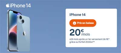 Une fois votre smartphone commandé et reçu, vous pouvez encire récupérer la coquette somme de 80€ sur le montant déboursé grâce à une offre de remboursement après achat. Suivez simplement les instructions fournies par le site de l’opérateur pour recevoir, au bout de quelques semaines, le remboursement sur votre compte bancaire. Ainsi, votre iPhone 14 vous revient seulement à 1€ à l’achat puis 19,20€/mois pendant 24 mois.