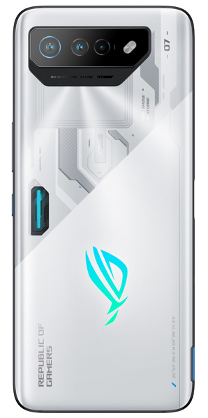 Si cela ne suffit pas, il est possible de lui associer l’accessoire AeroActive Cooler 7 qui est vendu séparément ou livré avec la version ROG Phone 7 Ultimate. Asus promet une efficacité thermique de 20% avec l’AeroActive Cooler 7. Le ROG Phone 7 Ultimate est proposé uniquement en blanc alors que le ROG Phone 7 est disponible en blanc ou en noir. Ils ont des profils particulièrement arrondis. L’arrière des smartphones est protégé grâce à la technologie Corning Gorilla Glass 3 à l’arrière et Gorilla Victus à l’avant.