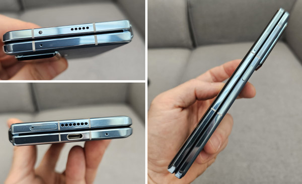 Le Honor Magic Vs propose donc un format très similaire au Samsung Galaxy Z Fold4 avec une ouverture tel un livre utilisant une charnière verticale, mais, contrairement au modèle du Sud-Coréen, celui-ci n’a pas d’espace entre les deux volets. Honor revendique une résistance à plus de 400 000 pliures de sa charnière avant un problème, ce qui représenterait 10 ans d’utilisation à raison de 100 manipulations par jour. Le mobile pèse 267 grammes et propose une épaisseur de seulement 6,1 mm lorsqu’il est totalement ouvert.