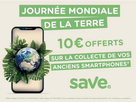 En participant à cette opération spéciale de Save, il s’agit donc de faire un geste pour l’environnement tout en bénéficiant d’un bon d'achat de 10 €. Ce bon peut être utilisé pour effectuer une réparation sur leur smartphone actuel ou pour acheter un accessoire en boutique. Cette initiative permet ainsi de réduire l’impact sur l'environnement tout en encourageant les consommateurs à prolonger la durée de vie de leurs téléphones. Cette offre est valable uniquement sur dépôt en magasin du 22 avril au 22 mai 2023.