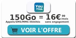 Le forfait Le First, destiné aux utilisateurs les plus connectés, est toujours disponible chez YouPrice. Cette offre spéciale, valable sur le réseau Orange ou SFR, est sans engagement et commence à seulement 9.99€ par mois, et cela ne concerne pas seulement la première année. Comme l'offre Le One, ce forfait mobile est flexible selon votre consommation internet, allant de 100 à 120 Go en France. Le premier palier jusqu'à 100 Go est facturé 9.99€, puis le second palier de 100 à 110 Go est à 12.99€ par mois, et enfin, le dernier niveau jusqu'à 120 Go est à 14.99€ par mois. Vous bénéficierez par ailleurs des appels, SMS et MMS illimités en France et depuis l'UE et DOM. Depuis ces zones, l'opérateur alloue 16Go pour rester connecté pendant vos vacances. De plus, avec cette offre, vous pouvez demander à bénéficier de la 5G d'Orange ou SFR pour seulement 5€ de plus par mois.