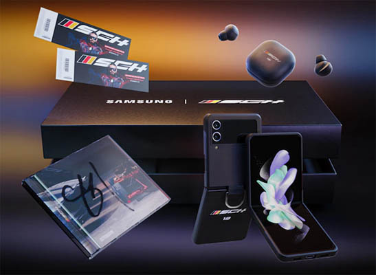 À l'intérieur du coffret arborant fièrement le logo Samsung x SCH, les chanceux détenteurs découvriront le smartphone que SCH tenait dans le clip Autobahn : un Galaxy Z Flip4 graphite avec une capacité de 256 Go. Ce précieux téléphone sera accompagné d'une coque ornée du logo SCH19, dédicacée à l'intérieur par le rappeur lui-même, alias "S". Et pour profiter d'un son de qualité optimale, une paire d'écouteurs sans fil Hi-Fi 24 bits avec réduction active de bruit, les Galaxy Buds2 Pro, sera également incluse, avec une coque anthracite "SCH19".