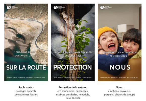 Afin de créer un certain engouement autour des capacités de ses smartphones, la marque Honor a récemment lancé un concours de photos. Intitulé Honor Magic Moments 2023, il entend partir à la découverte de nouveaux créateurs d’images : Vous ! Le concours récompense ainsi les meilleurs talents à travers une sélection de pays et de régions. Un total de 59 prix seront ainsi décernés par un jury international pour les meilleures photos. Pour l’occasion, 6 thèmes sont proposés : Sur la route, Protection, Nous, Sur le vif, Votre histoire et Vidéo. Le thème Sur la route est dédié à des paysages naturels ou des coutumes locales. Le thème Protection fait appel à la protection de la nature, l’environnement, les naissances, les espèces protégées, les minorités ou les lieux secrets. Le Thème Nous concerne les photos où on peut sentir les émotions, les souvenirs, voir des portraits ou des photos de groupe.