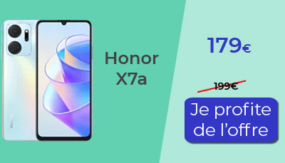 Dans l’entrée de gamme du fabricant chinois, c’est le Honor X7a qui voit son prix dégringoler pendant ces deux jours de promo. Disponible en Black (Noir) et en Silver (Argent), ce modèle s’illustre notamment par sa grosse batterie de 5330 mAh et son stockage interne extensible jusqu’à 1 To via MicroSD. Son écran de 6,74 pouces rafraîchi à 90 Hz et son capteur grand-angle de 50 mégapixels sont également des atouts non négligeables.