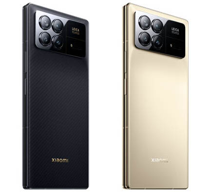 Le smartphone pliant Xiaomi MIX Fold 3 est décliné en trois finitions : noire, dorée avec des éléments en verre et en fibre composite.